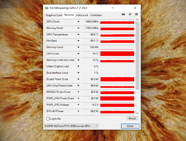 显卡方面,NVIDIA给的RTX 3060官方功率范围是60W~115W,如果算上Dynamic Boost 2.0的增益,RTX 3060的最高功率版本是130W。而暗影骑士·擎搭载的RTX 3060则是中等水平的95W版本。如下所示1,在FurMark中单考独显时,RTX 3060的最高功率为95W。