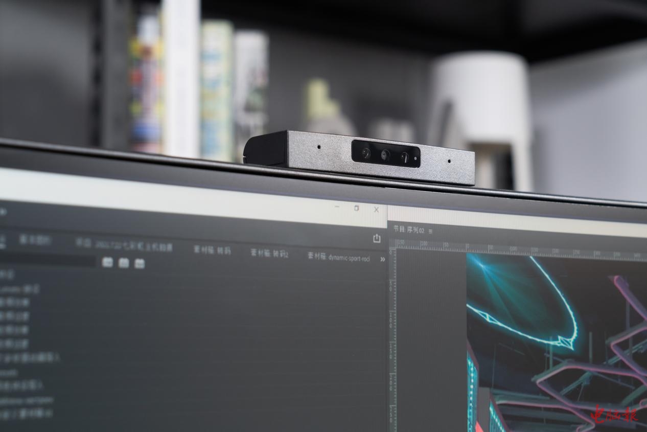 显示器顶部设置了一个弹出式隐藏摄像头,画面清晰度不错,开视频会议就无需再额外连接摄像头了,更重要的是这款摄像头还支持Windows Hello面部识别,通过面部识别进入操作系统,工作便捷又安全。在不用的时候,摄像头还能隐藏起来,避免隐私的泄露。产品还内置2个5W扬声器,音量足、解析力不错、人声清晰,无论是开视频会议还是查看视频内容都很适合,这样桌面上就不用再配备音箱了,又节约了桌面空间。