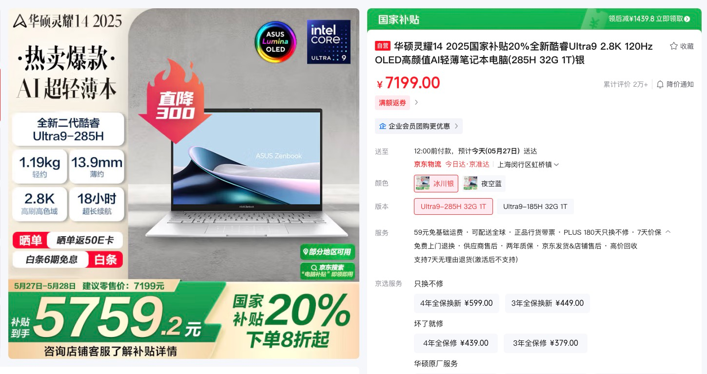 618华硕灵耀14 2025 AI超轻薄本超值购
