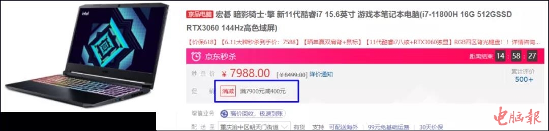 说它最稳,是从购机、用机等多个角度综合而言:首先,目前正处于年中促销期间,但比较尴尬的是,少数热门品牌如联想供货不足,开卖之际即导致“购买”按钮瞬间灰色,用户购机体验一言难尽。相比之下,暗影骑士·擎供货非常稳定——并且还有很重要的一点,该机的价格相当实惠:i7 11800H+RTX 3060促销价格仅7599元,不到8000元即可拿下,还不用抢购。