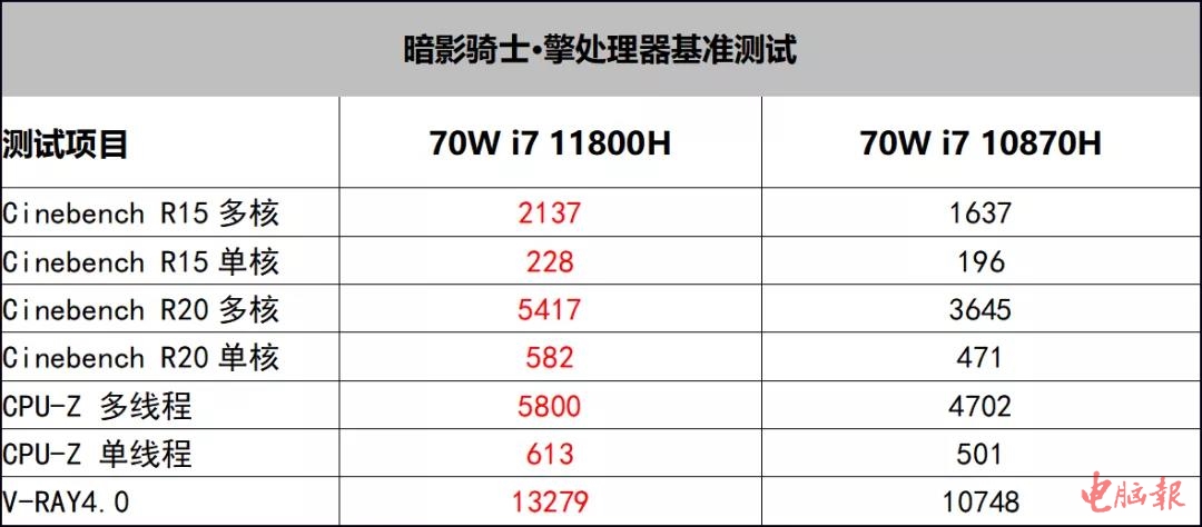 而i7 11800H在70W功率下的性能表现非常强劲!下面的数据是牛叔的实测暗影骑士·擎处理器成绩。