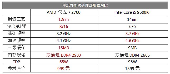 ●如果用户有更高的性能需要,锐龙7 2700机型以后还可以继续升级锐龙9等12核心24线程以上的高端旗舰处理器,而Core i5 9600KF机型最多也就只能升级到8核心16线程了,升级空间不大。