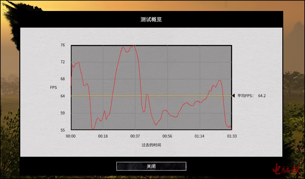 ▲一款打僵尸的轻度游戏,这款游戏对硬件要求不算高,在高画质下,传奇X RTX 3050的平均帧速为64fps,中画质下为71fps,帧速不错。