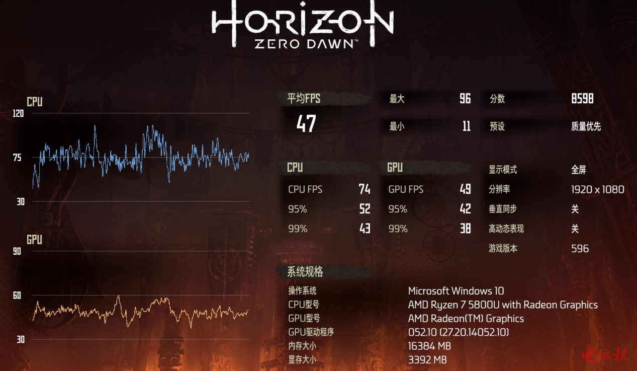 下面进入游戏实测环节,首先是FHD单机游戏测试,考虑到轻薄本的定位只是轻度娱乐,因此在3A游戏实测中,游戏设置为中/高画质,更为贴近轻薄本的实际运行环境。