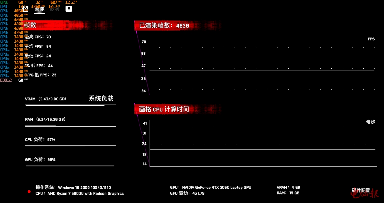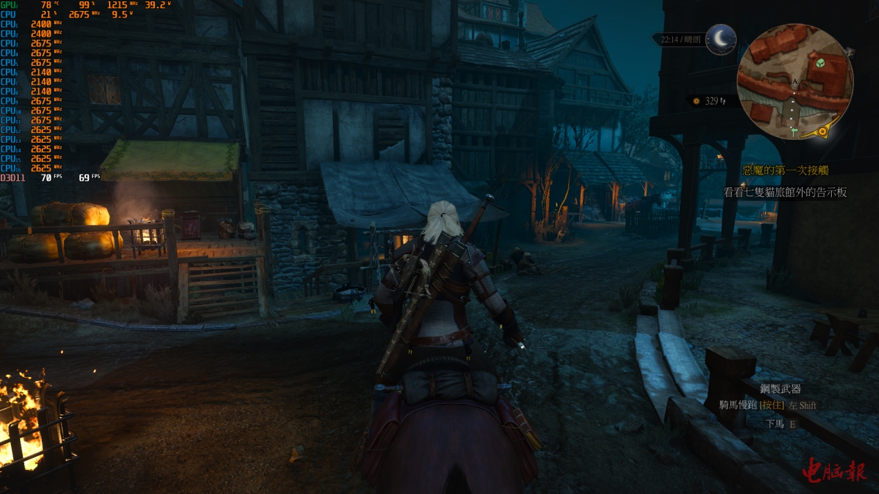 ▲饱受好评的一款RPG游戏,同样来自于CD Projekt RED。在16年的时候是牛叔经常跑的一个测试游戏,当时堪称硬件杀手,那一代甜品独显GTX 1060在默认高画质下也就跑个50fps左右。实测来看,传奇X RTX 3050高画质是54fps,中画质是69fps,帧速还不错。