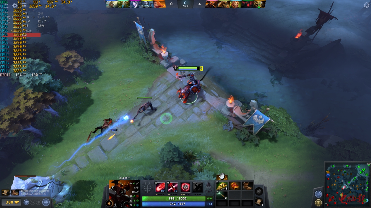 ▲另一款热度不错的MOBA类游戏《DOTA2》,FHD最高画质下,传奇X RTX 3050的平均帧速在130fps左右。