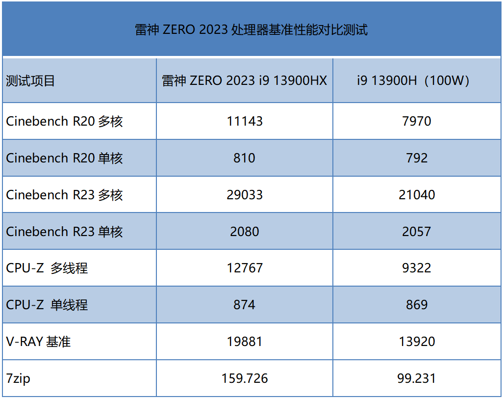 就处理器表现,对于雷神ZERO 2023这类搭载i9 13900HX处理器的游戏本,你完全不用担心处理器表现——妥妥的处于目前移动平台的第一梯度,如果你有特效视频制作、仿真计算、工程设计、机械设计、3D渲染等相关应用,具备24核32线程超多核心数量且性能超强的i9 13900HX肯定是笔记本处理器的最佳选择之一。