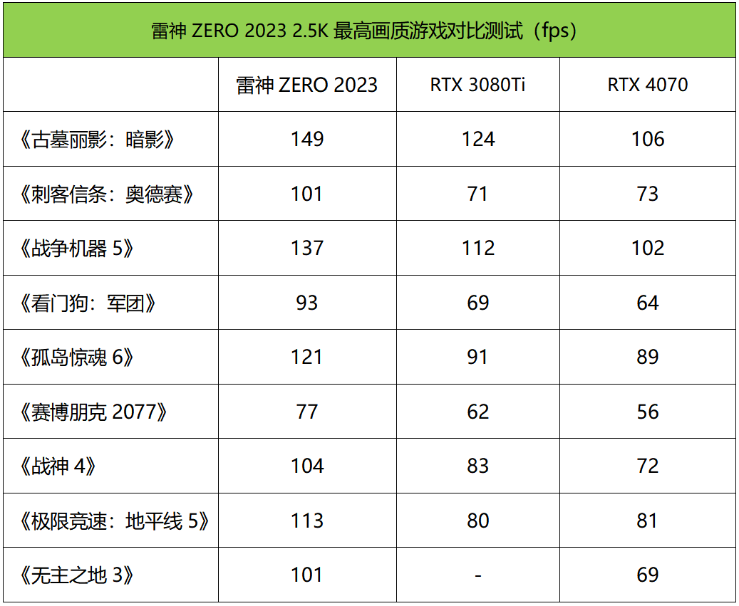 ▲对硬件要求不算高的3A大作《古墓丽影:暗影》,该机在2.5K最高画质下平均帧速狂飙到了149fps,达到了电竞级帧速。