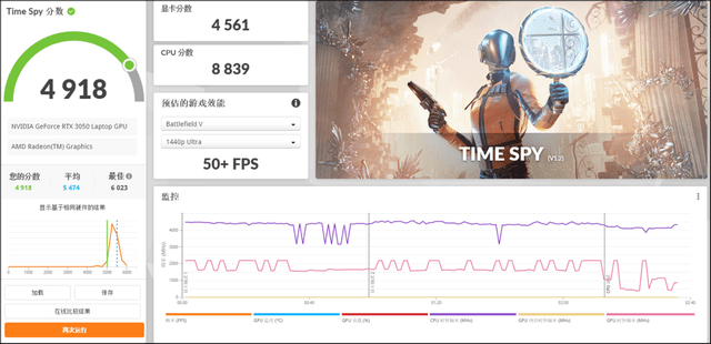 游戏实测,考虑到轻便机型的实际性能表现,我们将游戏画面设定为1920×1080分辨率中/高画质,对于RTX 3050全能本很适合,并且加入了60W的RTX 2050作为参考。