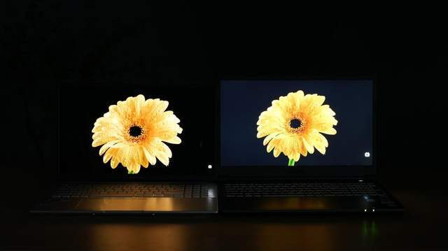 ▲OLED屏由于发光原理和传统的LCD屏完全不同,它的峰值亮度和对比度也是LCD屏难以匹敌的。在完全黑暗的环境中,很容易看出左侧无畏Pro15 2022锐龙版的OLED屏黑色部分可以做到完全的黑,LCD屏则只能表现出亮度较低的灰色,画面的质感和对比度差距就相当明显了。另外,OLED屏的高光细节保留得很好。