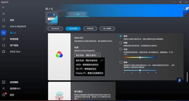 通过无畏Pro15 2022锐龙版内置的华硕管家,我们可以切换屏幕的显示色域范围,当你日常办公或打游戏时,可以选择原生的sRGB,但当你有出版、印刷等需要时,可以切换至AdobeRGB(印刷所需要的品红等颜色,在这个色域中才能显示),当你需要做影视级视频剪辑,或希望更还原地观看影视作品,可以考虑切换至DCI-P3色域,方便各种不同需求的用户。