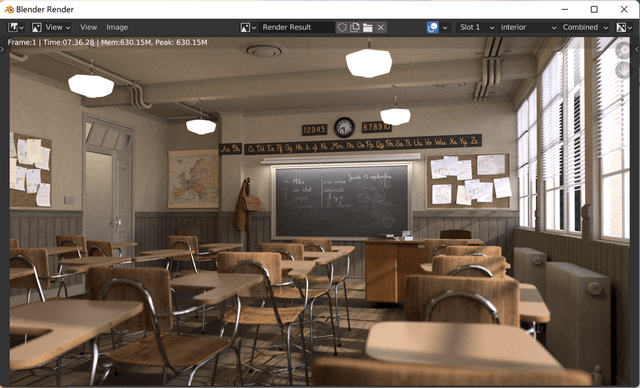 ▲Blender是一款开源的跨平台全能三维动画制作软件,支持处理器和独显渲染,这里我们利用RTX 3050的GPU渲染来考查无畏Pro15 2022锐龙版的CUDA渲染性能,同样是Classroom场景,GPU耗时1分58秒即完成了渲染,效率大幅度提升。