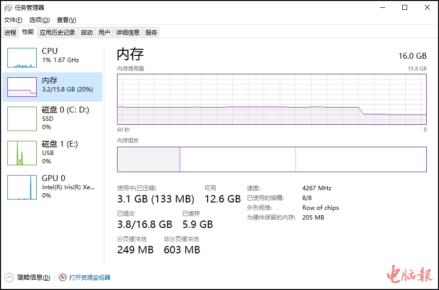 其次是内存。上面提到,该机的内存是2×8GB LPDDR4x 4266MHz款,高频率内存不仅在参数上看着出彩,也更能充分发挥整机的综合性能。