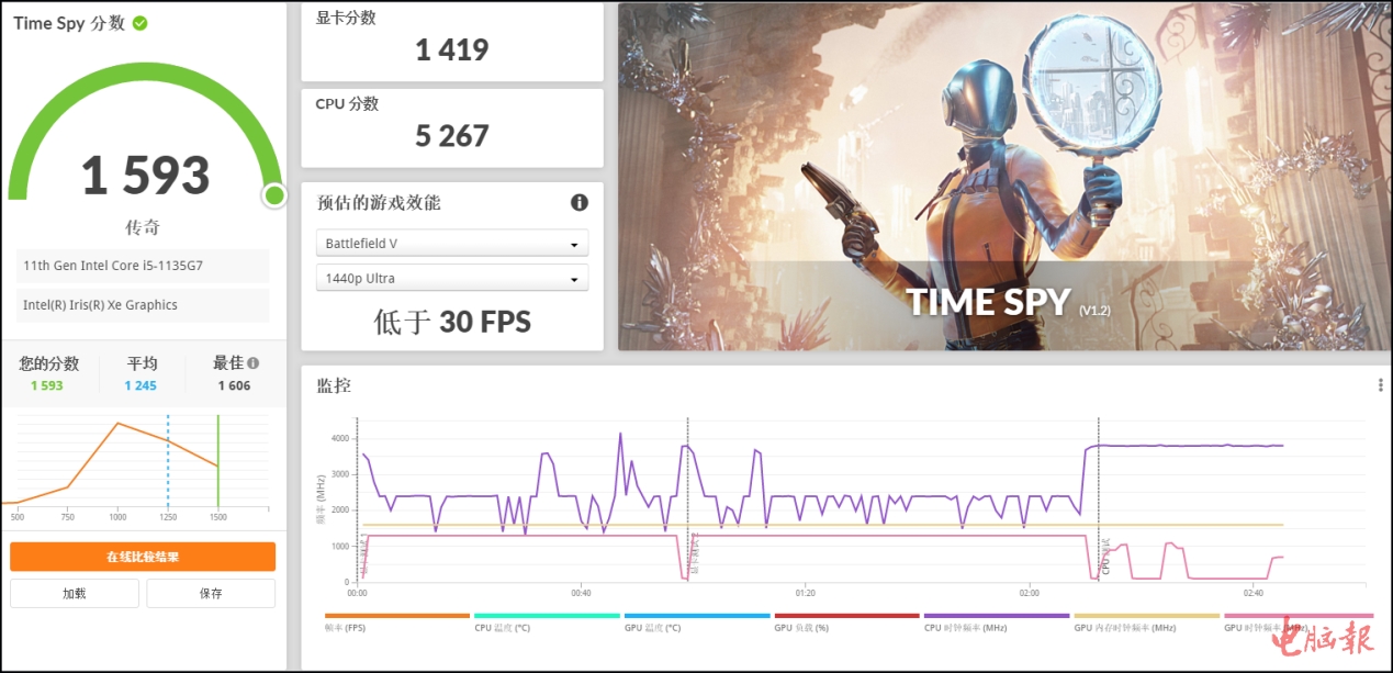 ▲3DMark Time Spy场景,显卡得分为1419分。