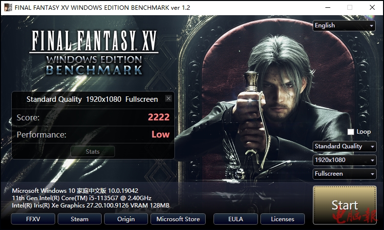 ▲FF15基准测试,FHD默认画质得分为2222,锐龙移动平台5000处理器的分数在1900左右,MX 450则在3000左右——当然,从实战角度而言,它们基本可以算是同一个水平的硬件:即轻度网游流畅级别。
