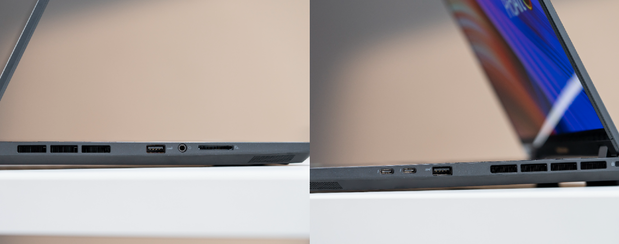 从布局来看,左右各有一个USB大口,保证了日常外接鼠标、U盘等设备的易用性。两个雷电4口则意味着ProArt 创16 2023的扩展性强大,快速传输大量文件素材,或者搭配扩展坞实现极为丰富的设备接驳都能轻松搞定。