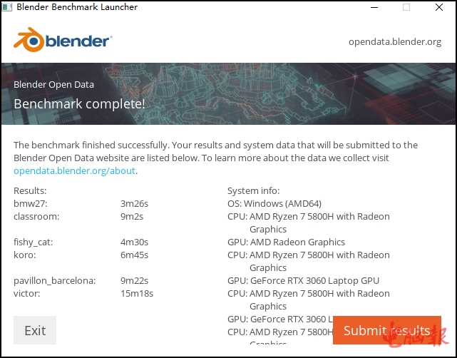 ▲Blender渲染测试(为了和之前测试成绩对比参考,我们采用的是同一个2.79b版本),暗影骑士·龙的锐龙7 5800H最终用时为4分19秒,也就是259秒,成绩不错。一般六核处理器用时在400秒左右,锐龙7 4800H的参考成绩是275秒。