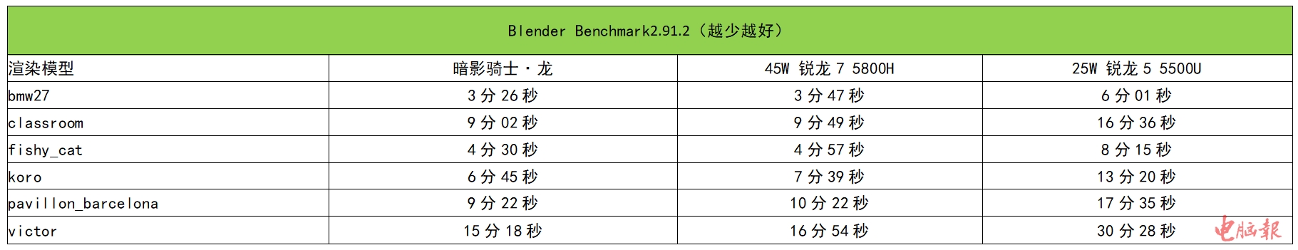 下表中牛叔加入了稳定45W款锐龙7 5800H作为参考,可以看出暗影骑士·龙耗时更短,效率更高:因为实际在渲染测试时,该机的锐龙7 5800H跑到了50W/3.77GHz左右。
