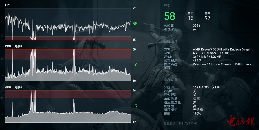 游戏性能测试:和95W款RTX 3060不相伯仲