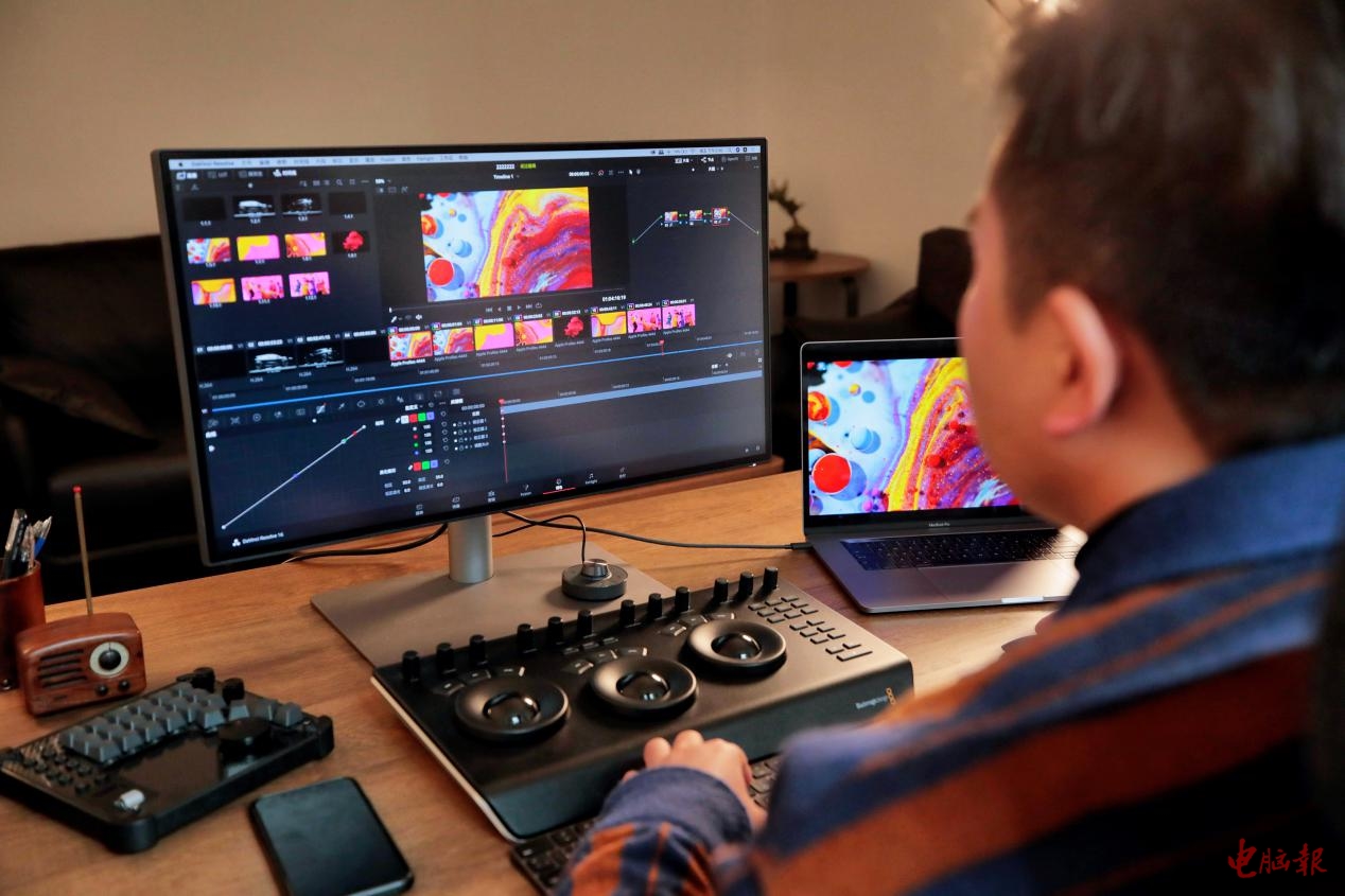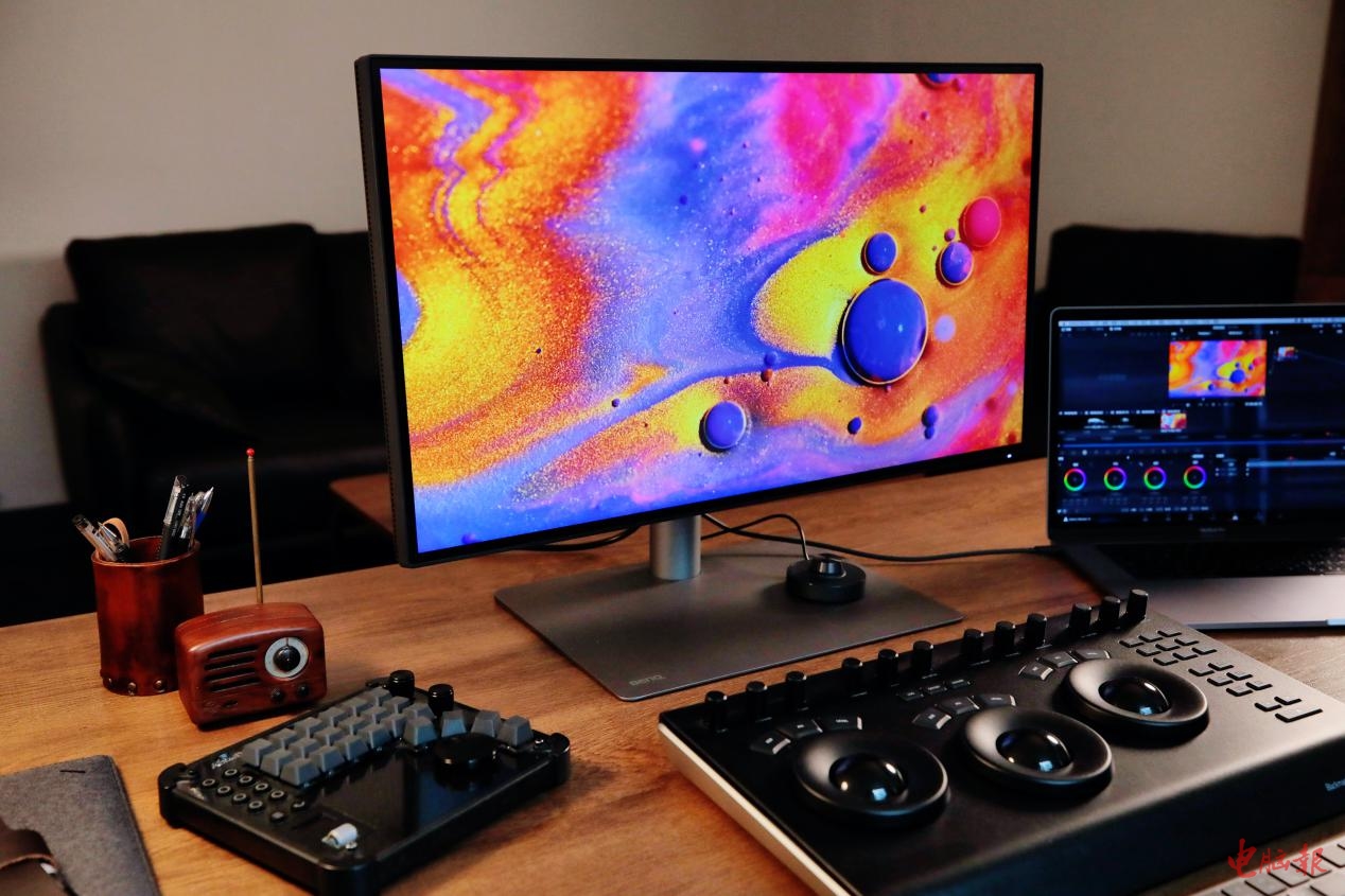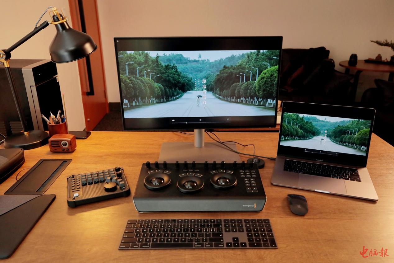 我将明基PD2725U作为MacBook的扩展显示器使用,得益于其27英寸4K分辨率的屏幕,在观看体验上要好上太多。听《电脑报》的编辑讲解,这款显示器在色彩上针对MacBook应用进行了专门的优化,大幅减少了色差。一开始我还有点将信将疑,不过在MacBook和明基PD2725U上(M-Book模式下)同时打开多个视频,仔细进行对比之后,我发现明基PD2725U的画质、色彩和MacBook几乎看出来有什么差别。灰阶断阶现象在10-bit面板中得到完美解决,渐变效果丝般顺滑,大大提高了后期对画面整体洁净度的处理。这让我在后期处理视频的过程中,可以直接将明基PD2725U作为剪辑显示器,在大屏幕上更容易操作,而让MacBook作为预览用,实时了解样片的色彩,确保最终的成片效果。