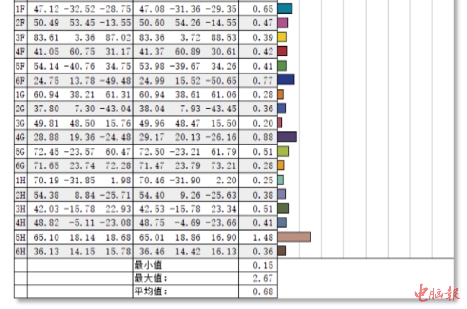 为了考查明基PD2725U的实际表现,我们用SpyderX校色仪来进行考查。在测试前将显示器重置并开机一个小时。仪器测出明基PD2725U色彩精准度△E平均值仅0.68,△E最大值也才2.67,这是非常不错的表现了,表明产品的色彩还原很精准。前面提到产品屏幕亮度色温进行了分区调校,使得其在均匀性方面的表现也让人眼前一亮:在100%亮度下,屏幕不同区域最大色差△E值只有1.9,而亮度均匀性的最大差异只有6%,在笔者测试过的显示器中,一般产品做得好的亮度差异性也达到了12%,表明明基PD2725U不同区域亮度和色彩的一致性做得很到位。