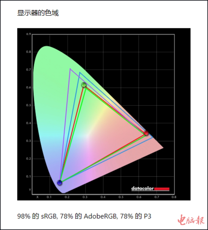 除了非常亮眼的双核心硬件之外,雷神ZERO的细节配置规格也相当高。该机搭载的是一块16英寸2560×1600分辨率165Hz高色域屏,响应速度5ms,DC调光。实测色域为98%sRGB,最高亮度超过了500尼特——室内使用时建议开到80%左右即可,完全够用。色准方面,△E最大值为4.39,最小值0.47,平均值1.18。总体而言,无论是分辨率、刷新率还是色彩表现都不错,日常使用、游戏娱乐体验都比较棒。