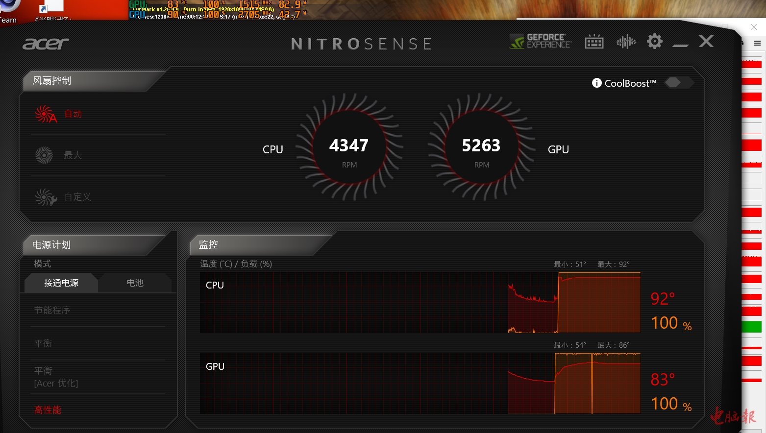 牛叔评测游戏本的时候,都是在各款机型的最大性能模式下进行。优势是可以完全发挥机型的最大性能,无论是处理器还是独显,都能功率狂飙,最大化压榨游戏本的硬件配置。尤其是在笔记本双考机满载时,其核心硬件的功率、频率、温度表现很重要,也是玩家们非常关心的重点,更需要在机型的最大性能模式下进行考查。劣势方面,则是在最大性能模式下,几乎所有的游戏本风扇噪声都很明显,在比较安静的环境中更甚,比如大学生在宿舍玩游戏时。