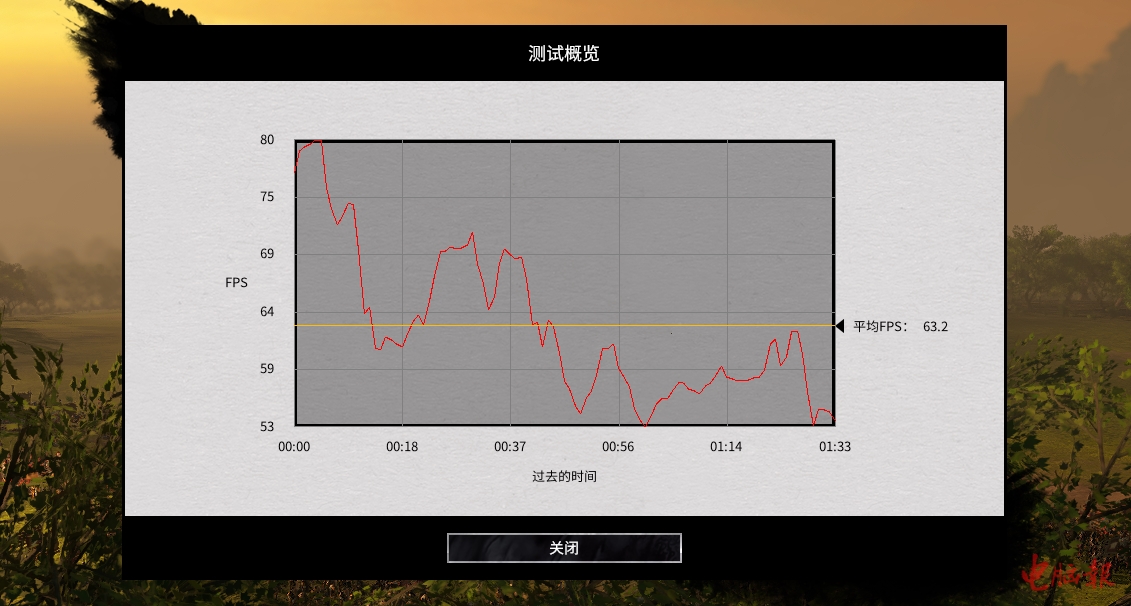 ▲《全面战争:三国》,自动风扇模式,FHD下最高画质平均帧速为63fps,最大风扇模式为64fps,考虑到测试误差,基本可以忽略。