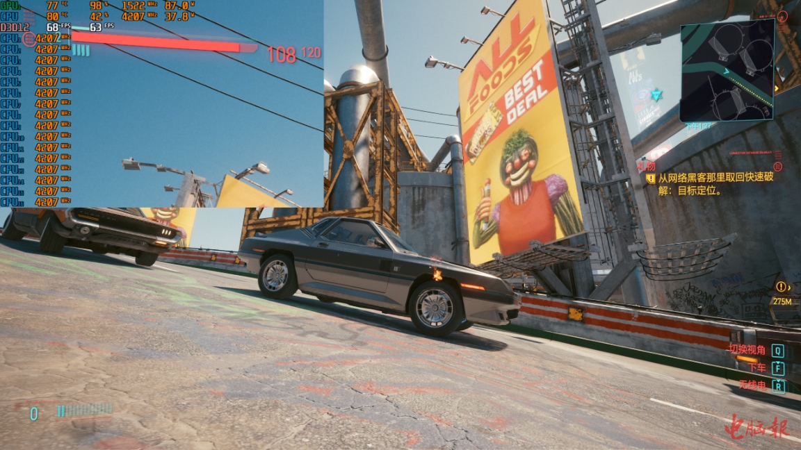 下面再看看实际游戏中暗影骑士·擎的核心硬件情况。牛叔选择的是对硬件要求较高的游戏(或者说优化较差)《赛博朋克2077》,此外考虑到上面FHD游戏测试中RTX 3060的性能表现不错,因此实战测试中,牛叔外接了一台2K显示器,以考查其在2K分辨率下的游戏实战性能情况。