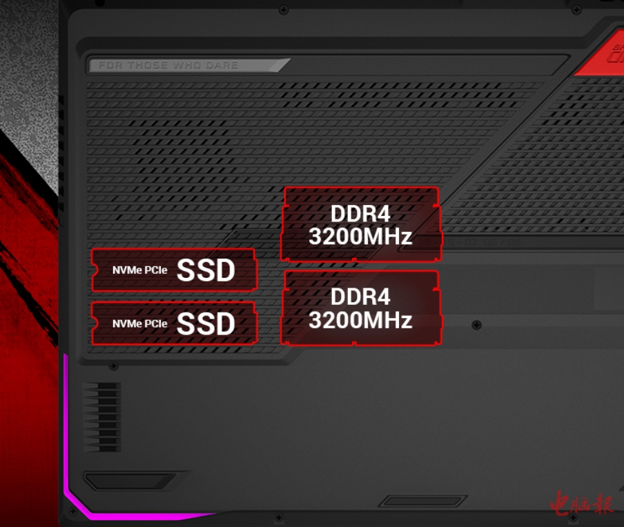 为急速响应双A核心硬件的炸裂性能,在数据传输方面,ROG魔霸5R采用了DDR4 3200MHz双通道内存与NVMe SSD的存储组合,最高可支持 64GB大容量内存,加快电脑的多任务处理速度。其内部提供的双 M.2 插槽直连 CPU,用户可自由添加SSD,还可组建 RAID 0磁盘阵列,以极快的速度加载大型游戏和应用程序。