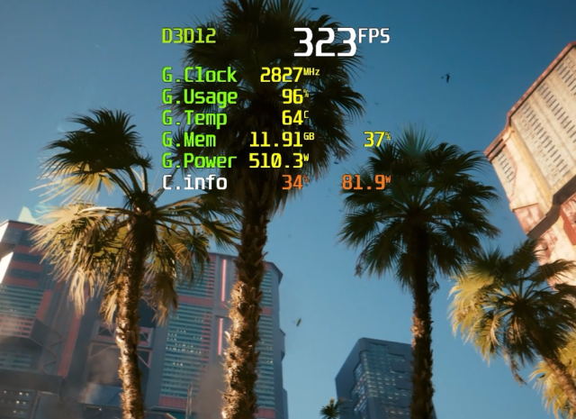 ▲RTX 5090 D在《赛博朋克2077》中启用DLSS 4 + 4×帧生成,4K极限光追画质下也可以能达到300fps左右的帧率