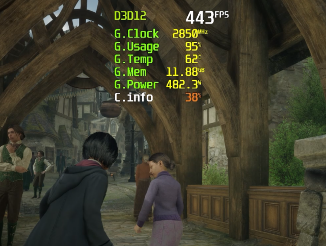 ▲RTX 5090 D在《霍格沃兹之遗》中启用Override模式的DLSS 4 + 4×帧生成,4K极限画质下实时帧率高达400fps+