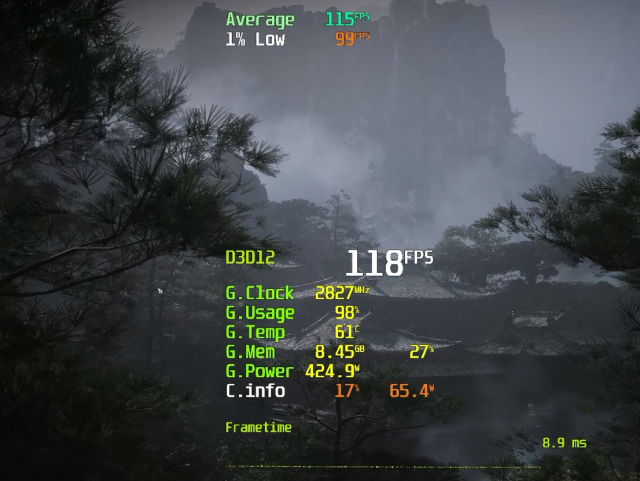 测试平台部分,我们选择了锐龙7 9800X3D与RTX 5090 D超级雕(白)搭配,将处理器部分的瓶颈效应控制在最小,同时还使用上代的RTX 4090 D与之进行对比。为了保证整板功率600W的RTX 5090 D超级雕(白)能够满载稳定运行,我们还使用了1300W的电源。此外,考虑到RTX 5090 D的旗舰级定位和性能水平,确保它在游戏中能100%发挥性能,我们本次游戏实测都使用4K分辨率。