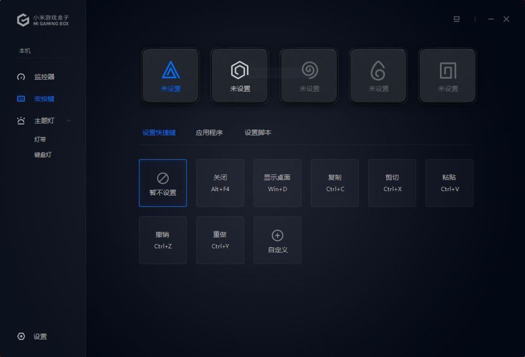 有不少朋友对发布会上“一键叫外卖”的功能很感兴趣,其实这是变相宣扬小米游戏本的自定义宏按键功能,在键盘的最左侧加入了一列5个印有神秘符号的按键,通过小米游戏盒子APP,可以对这5个按键进行宏命令编程,预设了包括Alt+F4、Win+D等7个常用组合键,当然玩家还可以自行添加。其次可以为每个按键定义特定的应用程序,“一键叫外卖”的梗就是将其中一个键设定为美团等外卖APP,一键即可点开。再次,这5个键都可以录键盘,对于一些需要连续点击多个按键才能触发技能的游戏来说,这基本上也算是物理外挂了……