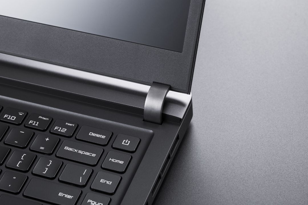 除此之外,该机的转轴设计也是一大亮点,它采用了外扩式机身设计,转轴更向笔记本内侧移动了一点距离,因此它的键盘位相对内部散热系统的距离会变得更远,不仅有利于高负载时热量不影响使用,同时还能给散热器预留更大的设计空间。最亮眼的是转轴其实仅仅只是左右各一的弧形金属支架而已,屏线与摄像头数据线等也都是转轴中穿过,这个设计并不多见,而且转轴的刚性很高,相当经得起折腾,在外形个性化方面小米游戏本的确做了很多新尝试。