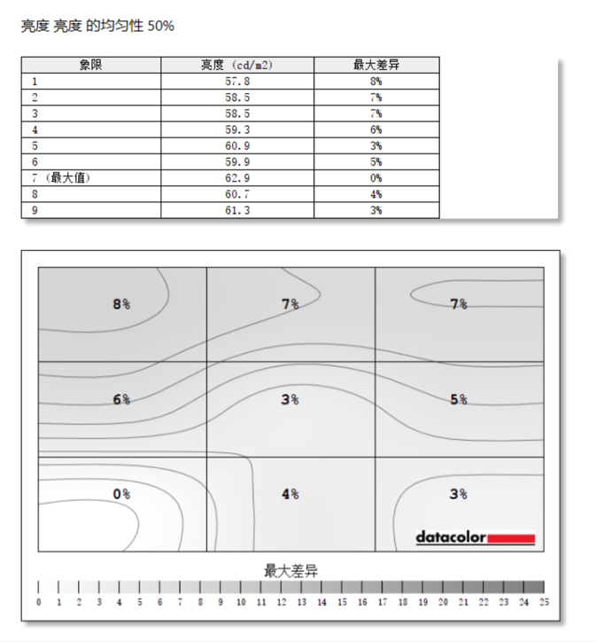 亮度均匀度方面,默认亮度时,该显示器的最大差异为8%,50%默认亮度时,最大差异为8%,整体来看亮度均匀度不到10%,表现比较不错。而在实际使用中,无论是日常的网页浏览、视频播放,还是照片的后期处理、视频编辑,AOC U27U2S使用观感都比较不错。广色域屏带来了丰富的色彩显示,看起来画面更加鲜艳通透。