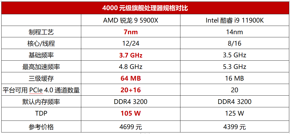 台式机处理器方面,目前Intel方面最强旗舰就是酷睿i9 11900K,具备8核心16线程,售价大约在4399元上下浮动,而AMD方面除了6000元级的16核心32线程顶级旗舰锐龙9 5950X之外,还有4000元级的12核心24线程次旗舰锐龙9 5900X。那么,如果在同价位段上进行对比的话,AMD锐龙9 5900X与Intel酷睿i9 11900K谁更值得选择呢?实际PK之后自然可以见分晓。