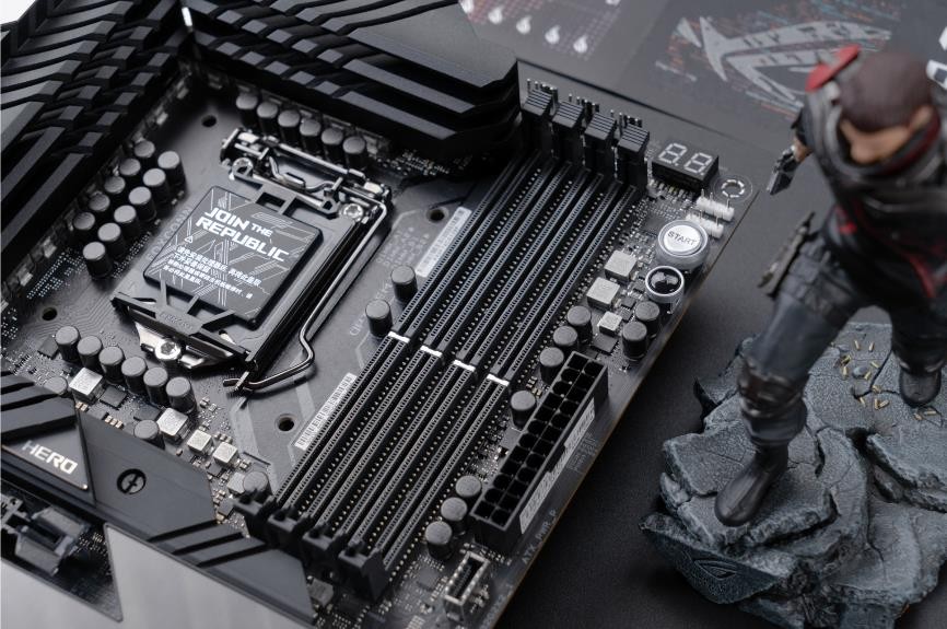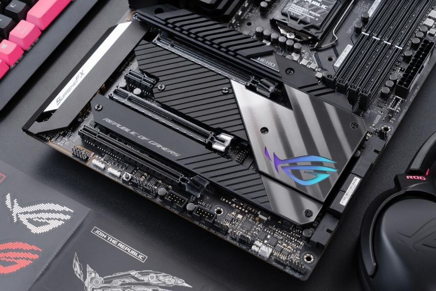 ROG Maximus Hero是ROG Maximus系列中针对中高端玩家的爆款产品。整体风格和上一代的ROG Maximus XII Hero比较接近,VRM区散热装甲上的ROG信仰LOGO有较大的改动,显得更加硬核。可以明显地看出无论是VRM区散热片还是整体的散热装甲都变得更加厚实,进一步加强了散热能力,以应对第十一代酷睿旗舰处理器高负荷运行时主板VRM区的散热压力。