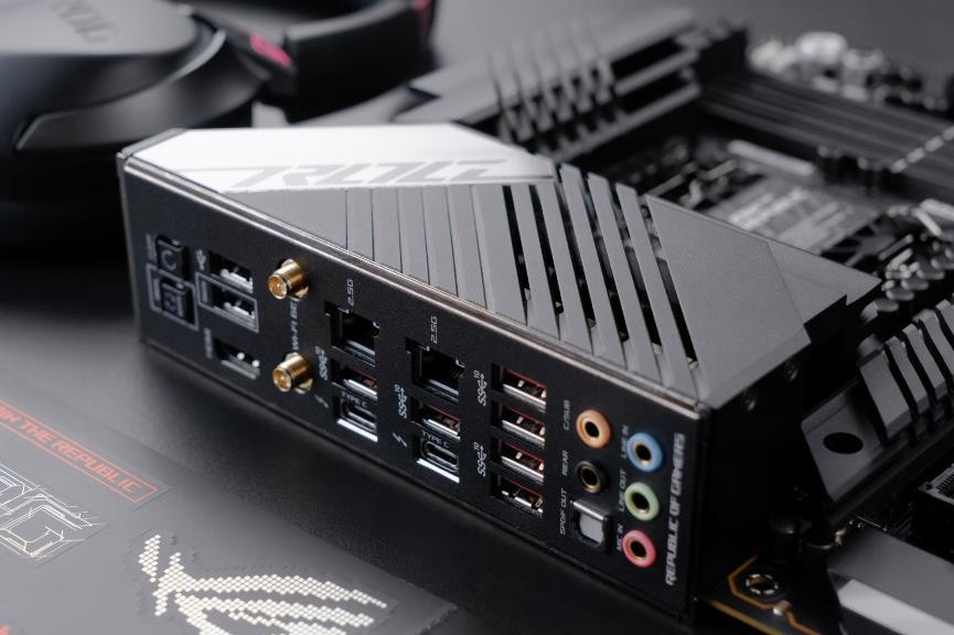 此外,ROG Maximus XIII Hero的板载音频已升级至SupremeFX ALC4082音频编解码器,并搭载了专用的ESS SABRE9018Q2C DAC,游戏音效提升到了更高的水平,可以为玩家提供了身临其境的游戏体验。I/O背板部分采用了ROG专利一体化I/O挡板设计,拥有6个USB3.2 Gen2(Type-A)和2个USB2.0(Type-A),另外还搭载了2个2 x Thunderbolt 4接口(Type-C)。网络部分,它搭载了Intel Wi Fi 6E AX210无线网卡和双Intel I225-V 2.5Gbps有线网卡。