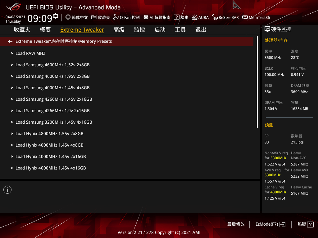 主板中也内置了多个内存超频预设供玩家直接选用