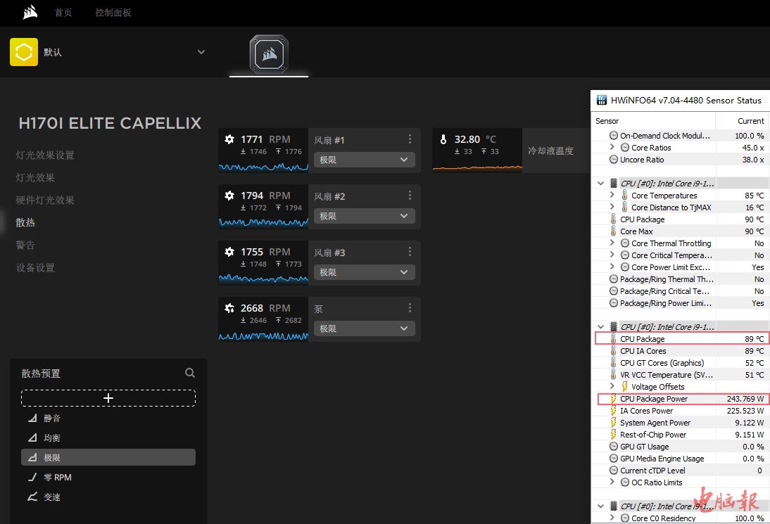 散热器:美商海盗船iCUE H170i ELITE CAPELLIX