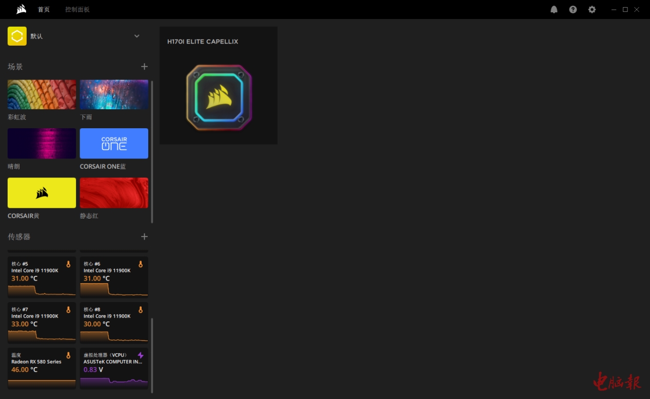 从前面的测试来看,H170i完全能满足Intel酷睿i9 11900K这样250W级别旗舰U的散热需求,表现明显优于市场中的中高端360一体式水冷,这与它配备高效水泵与420mm超大冷排不无关系。同时它的噪声控制也非常出色,玩家不但可以在预设的工作模式中自由选择,甚至还能创建自定义模式,实现更适合自己的散热性能与噪声平衡。此外,H170i的灯效也达到了信仰旗舰的水平,通过iCUE软件就能对冷头与风扇内置的RGB LED实现完全的控制,打造出极具个性化的视觉效果。总而言之,如果你预算充足,且需要一款顶级性能的一体式水冷,那么H170i绝对