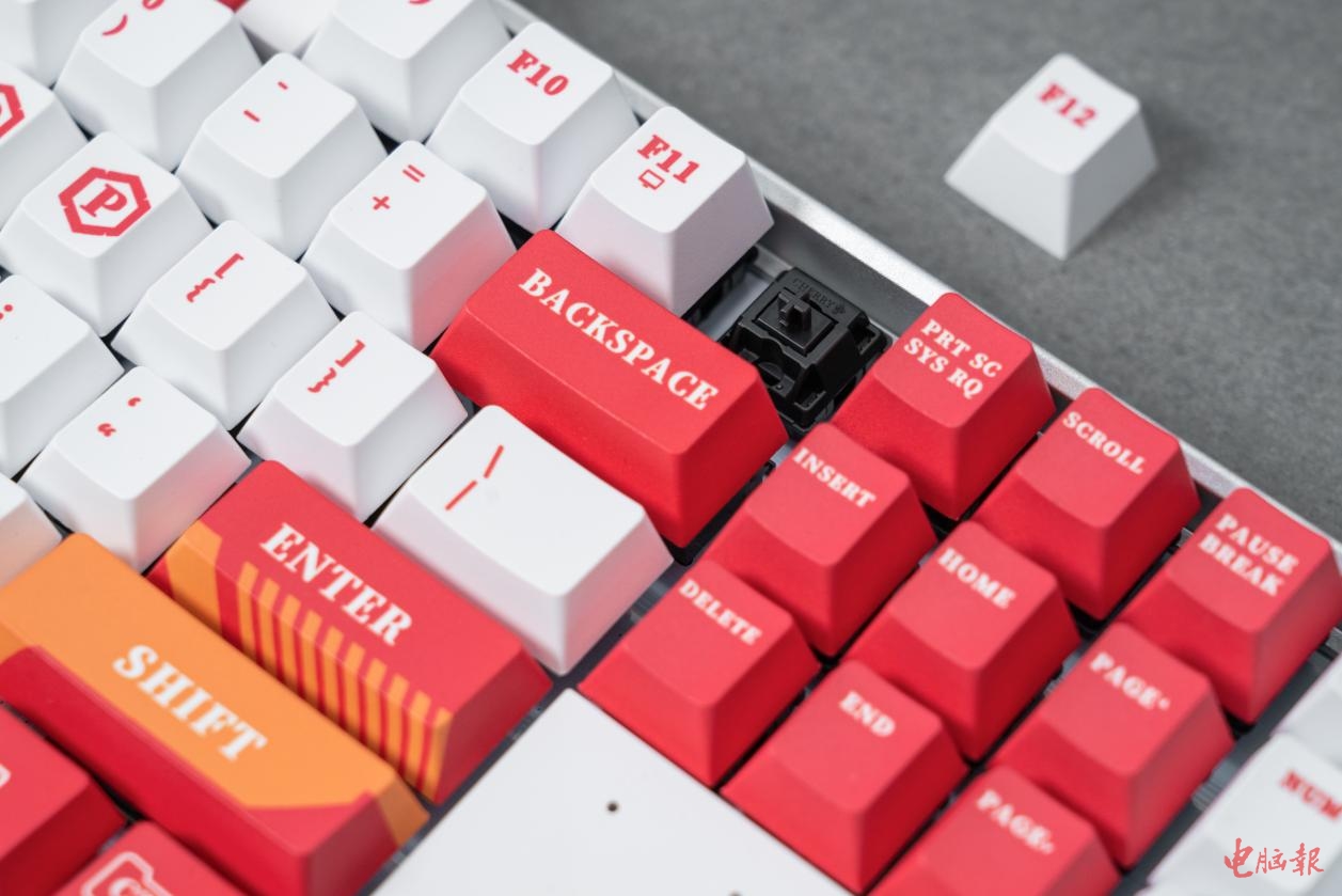 MX 3.0S二号机定制键盘则以红色成黄色为主色调,黑色为点缀。空格键、ENTER、SHIFT键上的图案自然得从动漫中二号机的形象中汲取元素进行设计,比如空格键就是二号机及其驾驶员明日香的经典动漫形象。