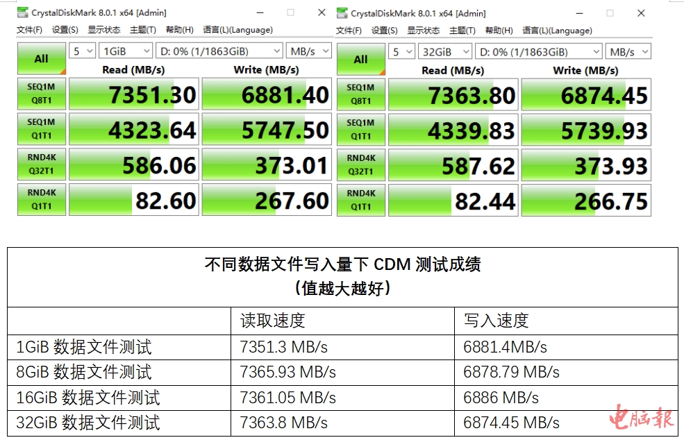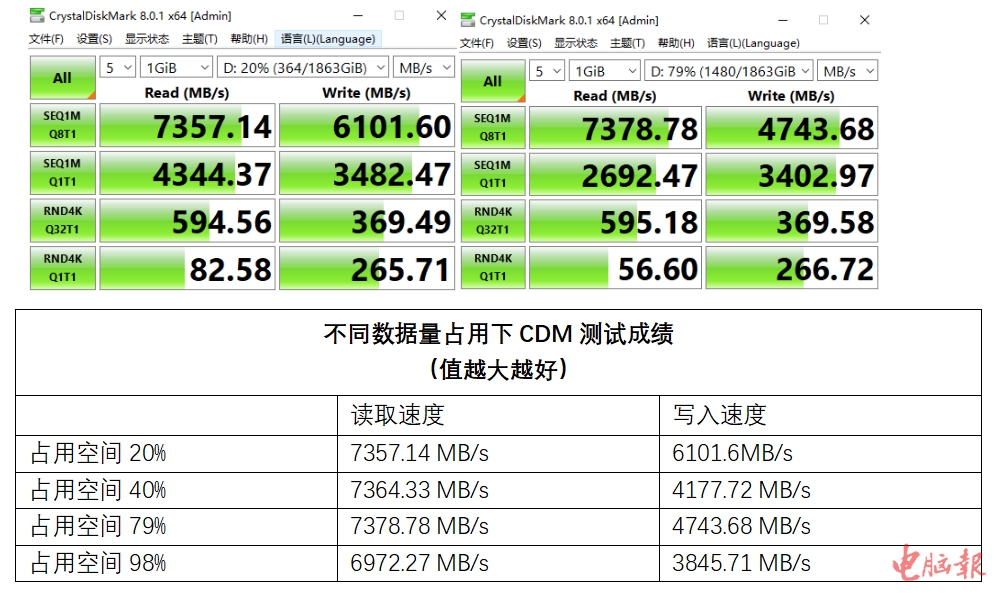 实测:超7350MB/s读取,磁盘写满也能维持高性能传输