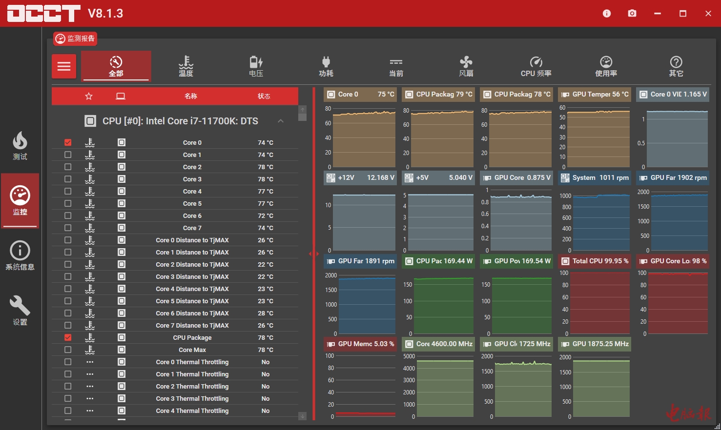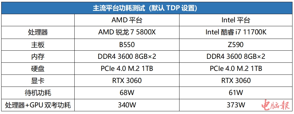 Intel酷睿i7 11700K + RTX 3060的组合,默认TDP设置下整机考机功耗大约为373W