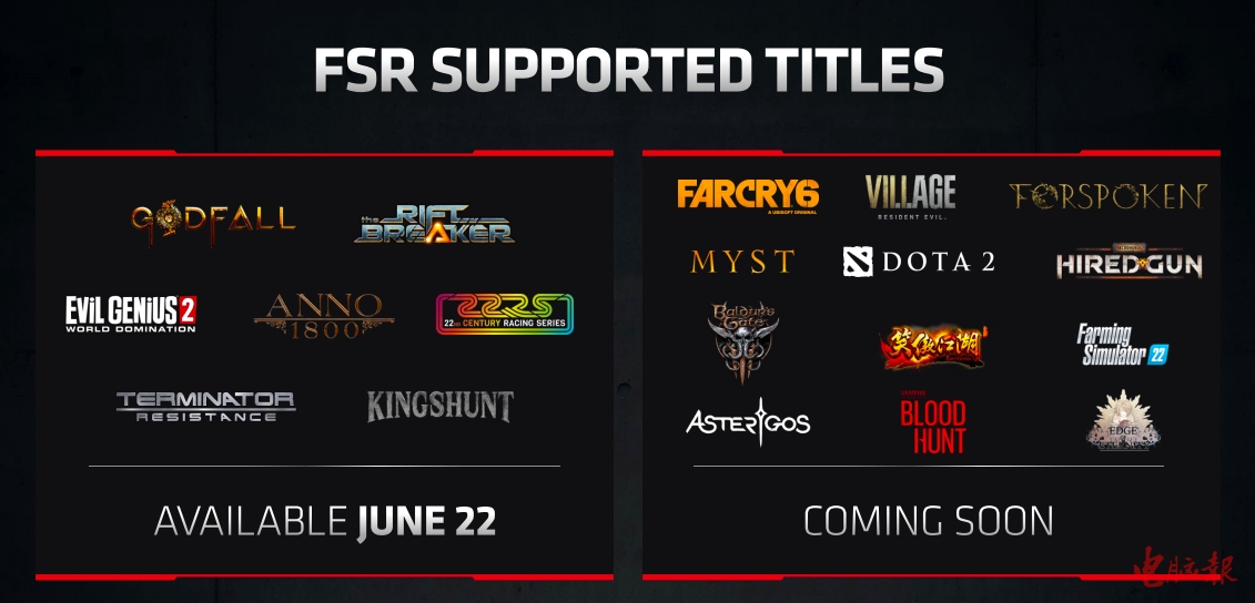目前,已经有7款游戏加入了对FSR的首发支持,而接下来很快还有12款大作跟进。同时,AMD还和众多的游戏开发商保持了紧密合作,计划在更多的游戏中加入对FSR的支持(目前已经得到了多达44家游戏开发商的支持)。而且,AMD还在官网商提供了一个通道,玩家可以由此告诉AMD希望在哪些游戏中加入FSR。