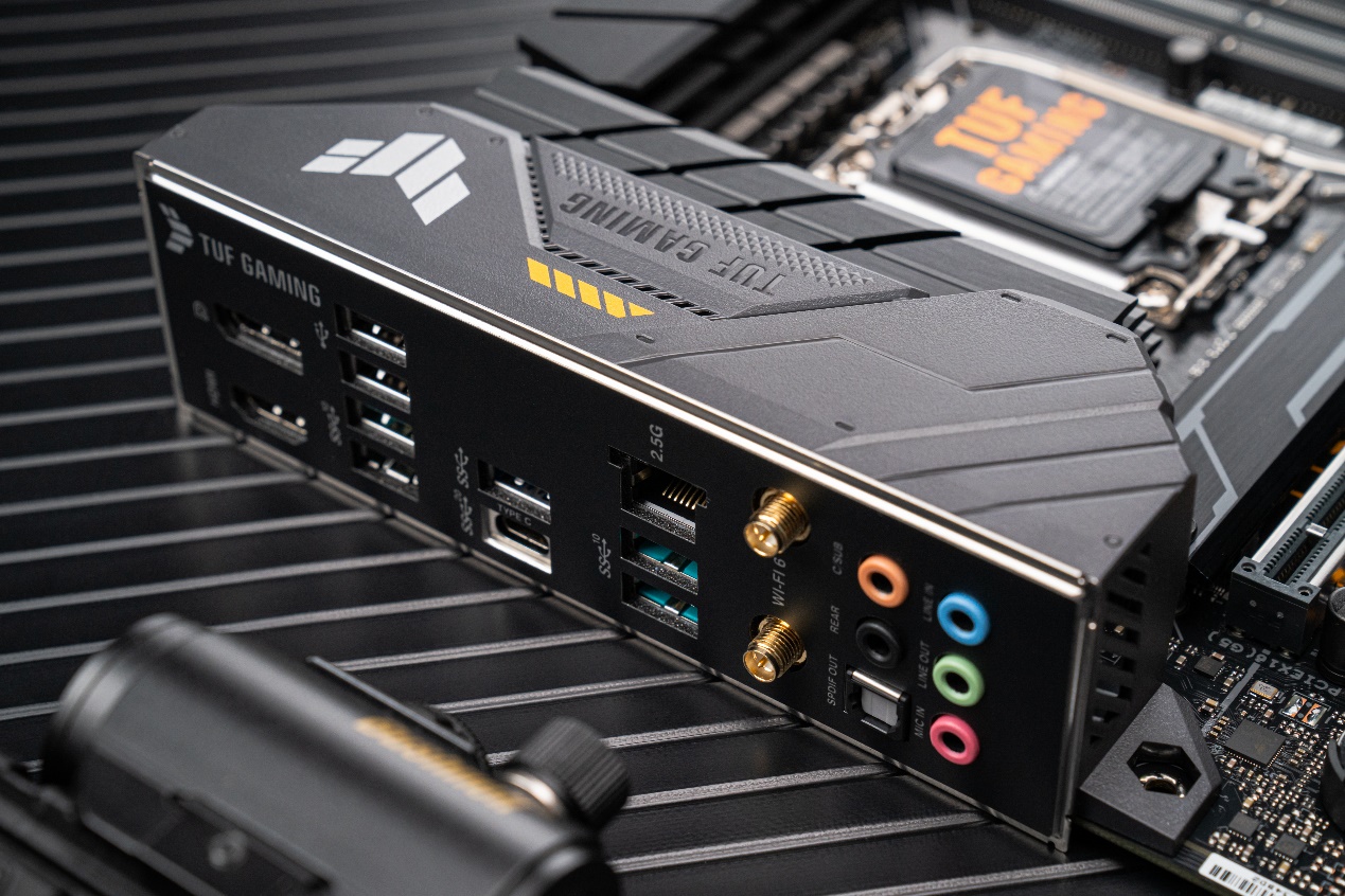 扩展部分,作为主流B660主板的代表之一,华硕B660重炮手WIFI D4主板预装了一体化I/O面板,拥有8个USB端口,分别是2个USB 2.0,1个USB 3.2 Gen 1(5Gbps),4个USB 3.2 Gen 2(10Gbps)和1个USB 3.2 Gen 2×2(20Gbps,Type-C)。USB接口数量丰富的同时,10Gbps高速USB端口占比也非常大,能够更好的满足当下高速外置设备的带宽需求。而且USB 3.2 Gen 2×2以往只出现在中高端主板上,如今能在主流B660主板上看到,也让玩家有机会连接并使用更高速的外置存储设备等产品。