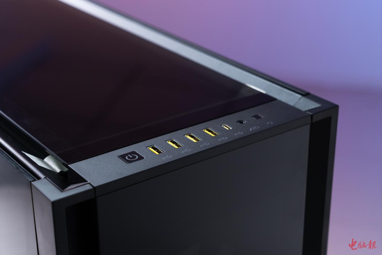 机箱提供了4个USB 3.0接口、1个USB 3.1 Type-C接口、1个耳机/麦克风一体接口在内丰富的接口。同时iCUE 7000X RGB所有的接口和按键均位于机箱顶部,使用起来非常的方便。