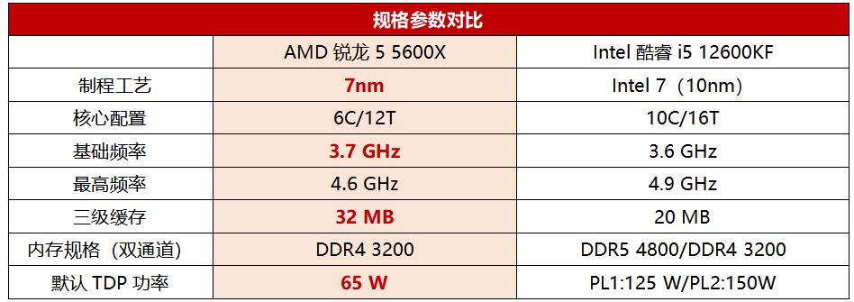 对相当部分主流用户来说,中端千元级处理器才是价格实惠又好用的选择。AMD锐龙5 5600X自从上市以来,就凭借强悍的性能成为打造中端游戏电脑的首选处理器,连战两代酷睿都毫无压力。如今市场上又有了来势汹汹的第12代酷睿,那么中端游戏玩家在装机时应该继续选择锐龙5 5600X还是酷睿i5 12600KF呢?今天我们就来详细对比一下。