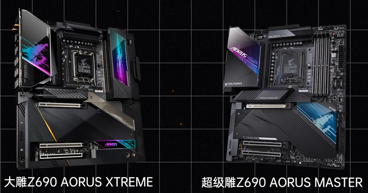 追求豪华配置、旗舰性能和极致超频能力的玩家,肯定会选择大雕Z690 AORUS XTREME和超级雕Z690 AORUS MASTER这两块主板,它们堪称是Z690中的“堆料狂魔”,大雕配备20+1+2相数字直出式供电,超级雕则为19+1+2相,处理器供电部分都采用了最高105A的MOSFET,搞定12900K这样的旗舰极限超频也不在话下,同时它们也配备了极为厚重的VRM散热装甲,第三代堆栈式鳍片与第二代直触热管更是无惧满载供电带来的散热压力。SMD贴片工艺的DDR5内存与PCIe 5.0显卡插槽带来更好的抗干扰能力,超频更稳更轻松。